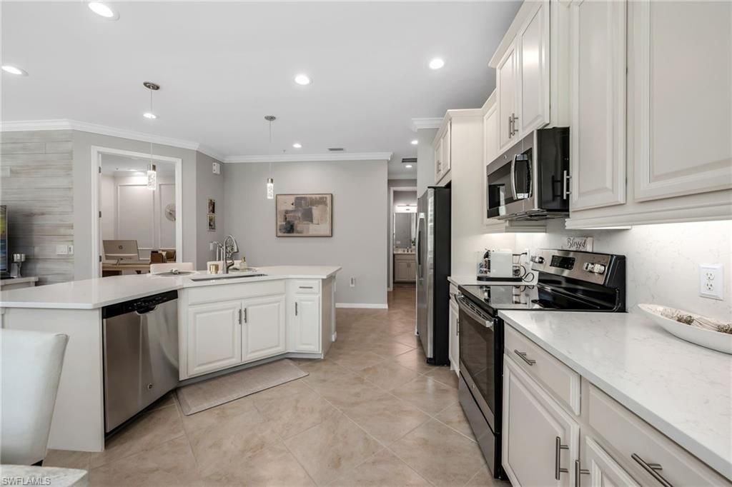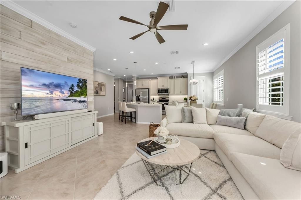 Beautifully remodeled Ravello model offering 3 bedrooms plus a den and 2 baths with highly desirable split floor plan. This stunning end -unit residence has been thoughtfully upgraded throughout and is filled with natural light. The home features a completed remodeled primary bath and guest bath, along with a beautifully updated kitchen showcasing new white cabinetry and elegant quartz countertops. Custom designer paint creates a light, bright and inviting atmosphere throughout. Elegant wainscot...Beautifully remodeled Ravello model offering 3 bedrooms plus a den and 2 baths with highly desirable split floor plan. This stunning end -unit residence has been thoughtfully upgraded throughout and is filled with natural light. The home features a completed remodeled primary bath and guest bath, along with a beautifully updated kitchen showcasing new white cabinetry and elegant quartz countertops. Custom designer paint creates a light, bright and inviting atmosphere throughout. Elegant wainscoting and picture frame detailing in the den and third bedroom add architectural charm and sophistication. The open layout provides both comfort and privacy, with a versatile den ideal for a home office or flex space. Relax and unwind enjoying picturesque sunsets from this exceptional property. Additional updates include a new ac unit and condenser (2025) The rare end unit location offers added privacy along with extra windows that fill the home with natural light. This exceptional property blends style, function, and timeless design in every detail, this wont last for long. Located in Sorrento, a gated maintenance- free community featuring resort -style amenities including a pool, fitness center, clubhouse, and bocce court. Ideally situated close to beaches, Naples, and upcoming mid-town Bonita development and just a short drive to RSW international airport.