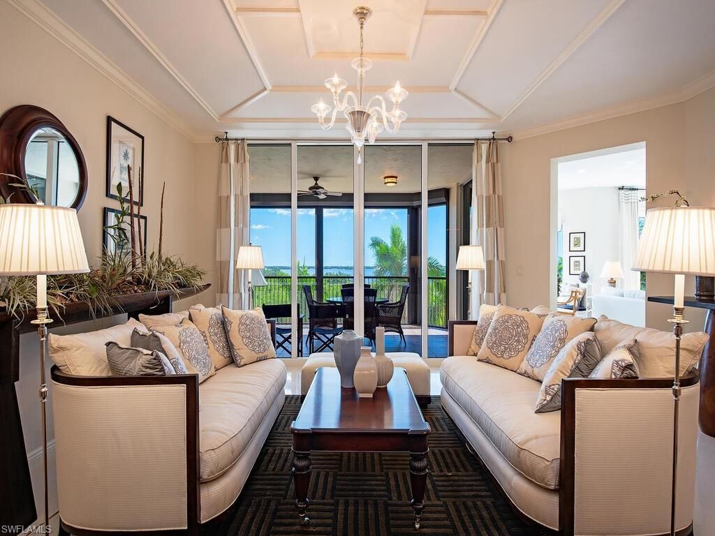 1/28/26 $175,000 price reduction.Discover elevated coastal living in this fully furnished 3-bedroom plus den, 3.5-bath residence in La Scala, one of Southwest Florida’s most prestigious high-rise towers. Located on the third floor with a private elevator lobby, this former model home offers over 3,500 square feet of air-conditioned space, blending timeless luxury with thoughtful design. The open-concept layout seamlessly connects the living, dining, and kitchen areas, surrounded by floor-...1/28/26 $175,000 price reduction.Discover elevated coastal living in this fully furnished 3-bedroom plus den, 3.5-bath residence in La Scala, one of Southwest Florida’s most prestigious high-rise towers. Located on the third floor with a private elevator lobby, this former model home offers over 3,500 square feet of air-conditioned space, blending timeless luxury with thoughtful design. The open-concept layout seamlessly connects the living, dining, and kitchen areas, surrounded by floor-to-ceiling glass that floods the interior with natural light and showcases stunning views of Estero Bay and beyond. Elegant white stone flooring, accented with dark wood in select areas, extends through the main living spaces and primary suite. The kitchen is outfitted with Siematic cabinetry, granite countertops, and stainless appliances—perfect for both daily living and entertaining. Each of the three en-suite bedrooms offers comfort and privacy, while the den provides flexible space for a home office or media room. Multiple lanais, both screened and open, invite quiet mornings and sunset evenings outdoors. High ceilings (9 feet 8 inches) and generous storage throughout add to the homes livability, and two assigned parking spaces and secure private storage is included in the under-building garage. La Scala offers world-class amenities including a grand formal lobby with twin marble staircases, 24-hour staffed front desk, resort-style pool and spa, fitness center, private theater, guest suites, and social rooms. Recent renovations include a new roof, updated stucco, fresh light exterior paint, fully refreshed garage and mechanicals, and all-new landscaping. As part of The Colony at Pelican Landing, residents also enjoy access to The Bay Club with two levels of waterfront dining, a private beach park accessible by boat shuttle, tennis, pickleball, a kayak park, optional Golf membership and a children’s playground